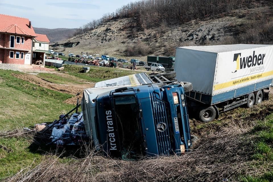Sot aktivistë të Lëvizjes VETËVENDOSJE! e përmbysën një kamion me produkte të Serbisë që shiten në Kosovë.